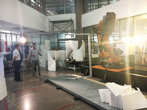 座谈会后,考察团一行参观了建筑学院的土木营造实验室和数字建构实验室。