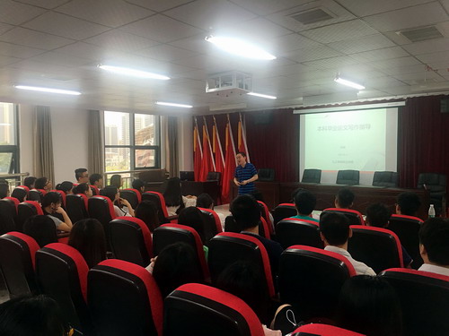 讲座开始前,曹钟安副院长向2018届毕业生们强调了毕业论文写作的重要性,他指出指导教师要严格把关,悉心指导学生按照要求完成论文工作;学生要结合相关专业,认真做好论文选题,在指导老师的指导下按时完成一稿、二稿和终稿,确保论文质量符合学校本科生培养方案要求。教研科副科长任晓燕老师公布了学院论文工作时间安排,并就写作规范提出了具体要求。