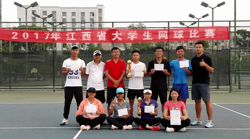 2017年江西省大学生网球比赛5月23日至28日在华东交通大学网球场进行,永利yl23411集团官网体育学院网球校队组队参加了本次比赛,并获得男子团体亚军、女子团体第三、男子双打冠军、男子单打亚军、男子单打季军、混合双打季军等优异成绩。