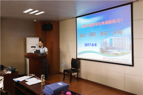 洪永春副科长代表医院,对全体实习生来院进行为期一年的临床实习表示欢迎,并就临床医学院/附属医院的历史沿革、规模布局、发展现状、医院环境、技术设备和师资力量等基本情况作了介绍,并重点强调了临床实习规范,要求实习生们严格遵守医院的各项规章制度,认真实习,努力争做优秀实习生。
