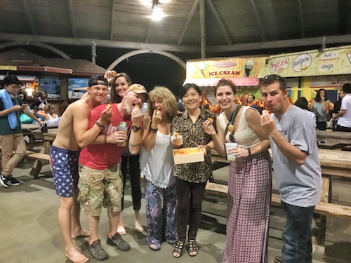 伴着皎洁的月光,孔子学院教师与萨凡纳州立大学在校师生一同舞着极具中国特色的红色长龙行走在萨凡纳市著名的旅游度假胜地泰比岛的木栈桥上,形成了一道亮丽的风景线,在沙滩上的游客们纷纷鼓掌叫好,连呼Amazing。