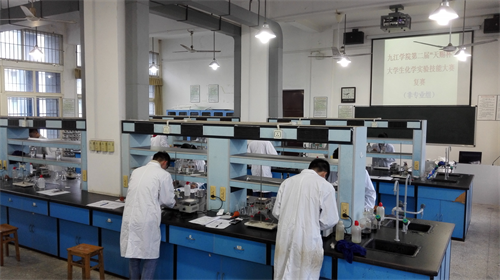 历时半年的九江学院第二届“天赐杯”大学生化学实验技能大赛日前圆满举行。本次大赛得到了陶春元副校长、实验中心、教务处等各级领导的关心支持、九江天赐高新材料有限公司的大力赞助,由化学与环境工程学院承办。大赛第一轮通知2017年5月11日在校园网挂出后,有化学与环境工程学院、机械与材料工程学院、药学与生命科学学院、基础医学院及临床医学院共381名学生报名参赛,其中专业组50名,非专业组331名。