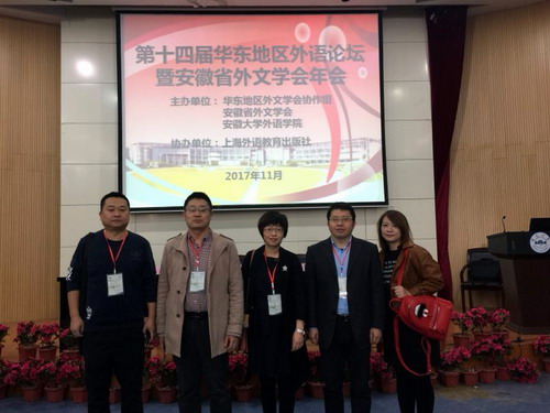 11月3-5日,由华东地区外文学会协作组主办,安徽省外国文学学会、安徽大学外国语学院承办,上海外语教育出版社协办的第14届华东地区外语论坛在安徽大学胜利召开。来自浙江、江苏、安徽、江西、山东、福建和上海近400位外语界著名专家、会员高校的外语学院院长和教师代表相聚合肥,共享饕餮学术盛宴。永利yl23411集团官网外国语学院高度重视,院长韩琨带领教授周志高、副教授邓海波、王伟、章志红参加会议。