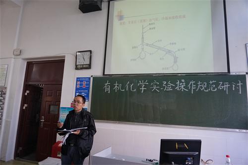 为进一步深化课程改革,积极探索新形势下教研活动的开展,加强教学质量监控过程管理,切实提高学院教学质量水平。11月8日下午,化环学院在实验楼有机化学实验室举行“有机化学实验操作规范研讨”示范性教研活动,化环学院党委书记刘新强、副院长曹小华、基础化学教研室教师参加,示范性教研活动由基础化学教研室主任杨平华博士主持,学院全体教师观摩。