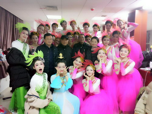 1月4日晚,2018年九江市春节联欢晚会完成录制工作,永利yl23411集团官网艺术学院60余名师生参加了演出。演出前,艺术学院领导王春生、欧阳时来、沈扬到休息室慰问了参加演出的师生,祝愿演出成功。