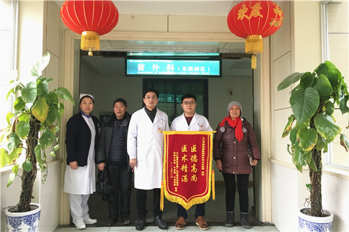 患者陈阿姨,6年前无明显诱因下发现左侧颈部肿物,近半年感觉肿物逐渐增大。陈阿姨前往多家医院,了解到手术治疗易出现并发症,可能会出现声音嘶哑、手足抽搐等,且在手术过程中颈部神经血管解剖复杂。后慕名来临床医学院/附属医院就诊,确诊为甲状腺肿物,在详细了解和评估状况后,东普外科孙胜主任立即组织科室医生讨论,为陈阿姨制定了详细的治疗方案。经充分术前准备,陈阿姨的手术非常成功,通过精心治疗和护理,恢复良好,很快便康复。陈阿姨说:“在我住院的这段时间,非常感谢这么多可敬可爱的医生和护士,对我关心备至,所以这次特意过来表示感谢。”