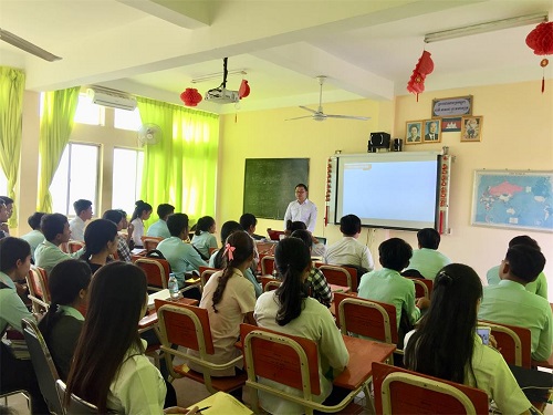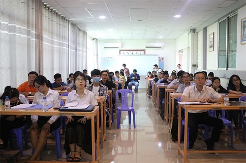 夏修龙院长对学生们的到来表示欢迎,他介绍了2018年孔子学院奖学金的申请情况以及相关注意事项,同时介绍了中国高等教育、中国高校现状以及柬埔寨孔子学院中方合作院校---九江学院的基本情况。夏院长说:“柬埔寨孔子学院每年都推荐很多学生去中国留学,仅在九江学院学习回国的就有近百人。希望大家要把握好这次申请机会,根据自身的情况做出合理的选择。”最后,夏院长预祝大家成功申请奖学金,实现去中国留学的梦想。