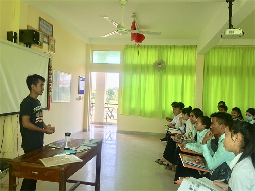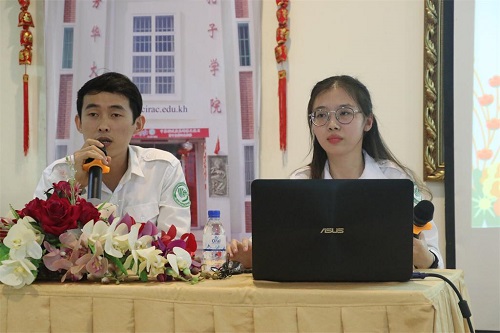 在棉芷大学宣讲会现场,还邀请了棉芷大学中文系学员陈博(BORONG CHHIN )为大家分享自己学习汉语的经验。陈博同学从汉语水平零基础到可以和中国老师轻松沟通,无障碍交流,表现非常优秀。