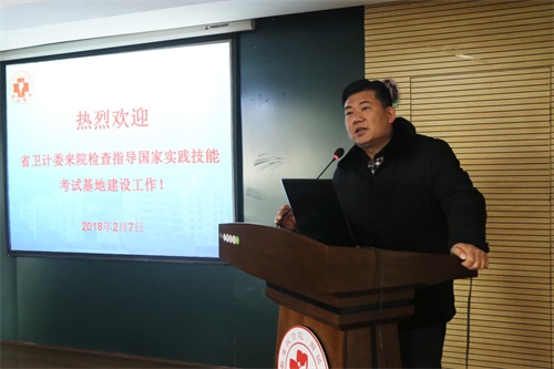 近日,省卫计委医政医管处处长罗礼生,省专家组组长邹书兵,省医政医管处王卓,省考试中心胡秋香、周济等一行人来临床医学院/附属医院督导国家实践技能考试基地创建工作。市卫计委总经济师徐端、市卫计委医政医管科科长朱衣文等,以及临床医学院/附属医院在家院领导和相关职能部门负责人参加了汇报会。