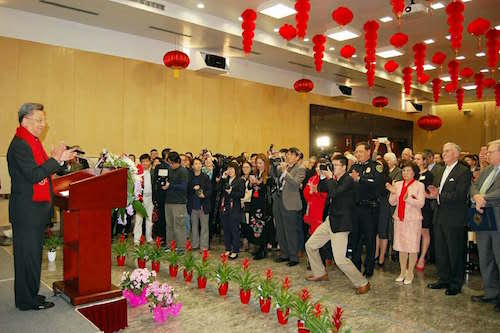 李总领事在招待会上发表致辞并向美南地区华人华侨拜年。致辞中介绍了中共十九大精神,中国经济发展及中美关系等情况,高度赞扬了美南地区华人华侨爱国爱乡、团结互助的可贵精神,期待广大侨胞找准中美合作切入点,积极投身两国友好事业,在各自岗位上取得新的佳绩。