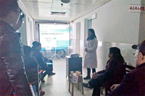 饶常红主治医师深入浅出地向广大病友讲解了“慢性阻塞性肺疾病”的病因、诱发因素等,并对何时要就医、出院后该如何用药、用哪几种药、怎么用等问题都一一做出了详细讲解。饶医师亲自示范了如何规范使用慢性阻塞性肺疾病药物,并表演“缩唇呼吸”等慢阻肺康复功能锻炼。