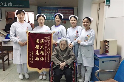“让人挑不出刺,非常满意!”102岁高龄宛懋筠老人的家属对临床医学院/附属医院消化内科精湛医技和优质护理服务如此评价。4月26日上午,成功手术并康复出院的宛老在家人的陪同下来到该院消化内科,以一面书有“医术精湛、医德高尚”字样的锦旗,表达对科室全体医护人员的真挚感谢。