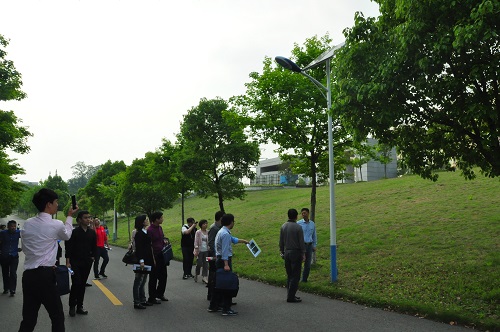考察团一行还到永利yl23411集团官网实地考察了解了太阳能路灯、校园环保电瓶车、汽车充电桩等运行情况。