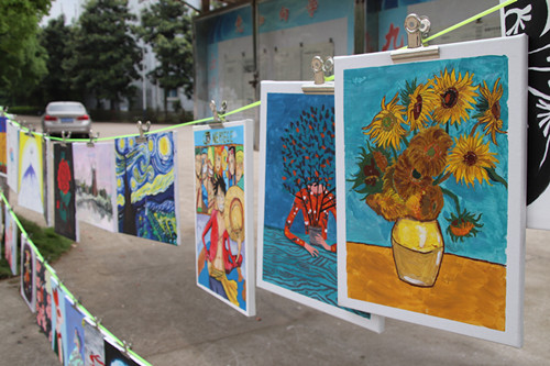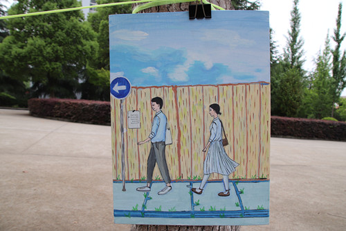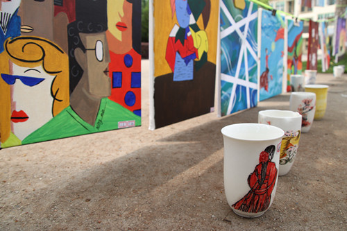 此次展览作品形式丰富多样:有手绘图案的T恤和球鞋,可爱惹眼;还有在庐山西海绘制烧制的水彩陶瓷板画和陶器,清新宜人;更有浓墨淡彩的各种风格装饰画。