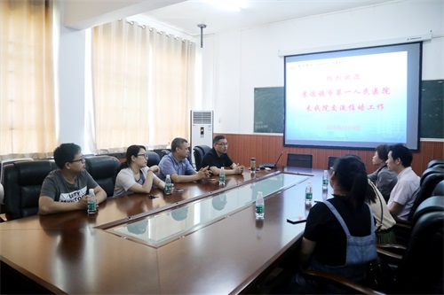 胡志坚副院长对景德镇市第一人民医院一行的到来表示欢迎,并就临床医学院/附属医院基本情况做了简单介绍;科教科曾泉主任就该院住培工作做了具体介绍。随后,双方对住培招生、学员管理、师资管理、考核管理等方面的工作问题进行了深入交流,氛围活跃。景德镇市第一人民医院医务科欧丽珍科长表示,贵院作为综合性教学医院,在教学资源、能力、方法上都有巨大优势;附院住培工作系统完善、工作扎实、亮点颇多,对他们的住培工作起到了非常重要的指导作用,让其受益匪浅。