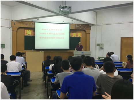 主管教学工作的余敬谋副院长对2018届本科毕业生的毕业实习工作做了总结,并对2018届本科毕业论文答辩做了动员报告。