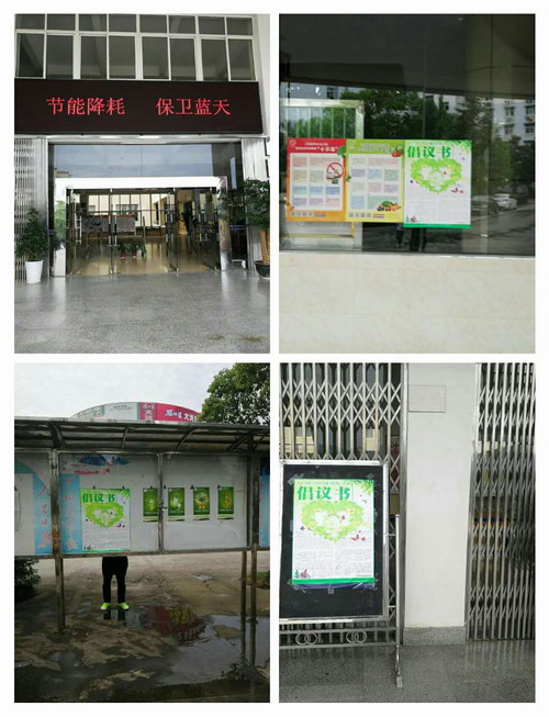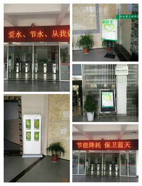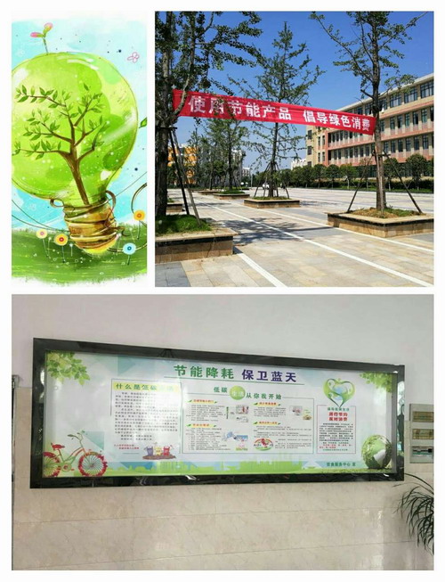 在校节能减排工作领导小组的组织下,各校区主干道、学生食堂、图书馆、行政楼等师生集中处都张贴了节能降耗倡议书、宣传画、悬挂了宣传条幅,并利用宣传橱窗、电子显示屏、校园网站等校内媒体做了大量宣传,取得了良好的成效。