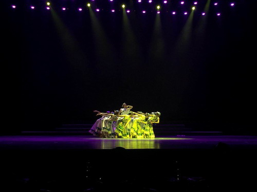 五彩的灯光配合着优美的旋律,悦耳动听的音乐拉开大赛帷幕。飘逸、奔放的舞蹈作品映入观众的眼帘,在脑海中一一陈列却来不及思考。观众席上的你可以清楚看到他们的动作,他们用自己形象生动的肢体语言,高难度的技术技巧,诠释出最富活力的青春姿态。可以感受到她们的陶醉,她们用自己轻盈优美的姿态,阿挪的身段,诠释“翩若兰苕翠,宛如游龙举”。我院的维族民间舞蹈《掀起你的盖头来》开场表演者手执玫瑰,步伐曼妙轻盈,迷人的舞姿让观众频频欢呼,耳熟能详的旋律和利索熟练的动作赢得观众阵阵掌声。更有原创舞蹈作品《若即若离》等节目。表演者独到的情绪展示生活中那些无可奈何的事或人,引发群众思考,传递生活的意义。这是一场古典与现代,热情与婉约碰撞的舞蹈大赛。