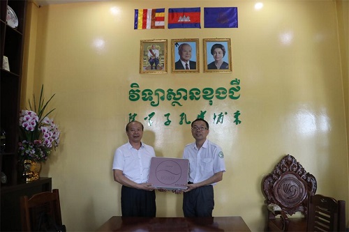 在捐赠仪式上,柬中投资协会会长郭建国说,孔子学院作为中柬人文交流的重要平台和纽带,为中柬友好和民心相通做出了贡献,作为企业,有义务和责任支持孔子学院的发展。孔子学院中方院长夏修龙感谢柬中投资协会对孔院的支持和关心,他介绍了孔子学院的现状,表示,孔子学院的发展离不开柬埔寨社会各界的支持和帮助,孔子学院将培养更多的高水平的汉语人才,回馈社会,为柬埔寨的经济社会发展服务。