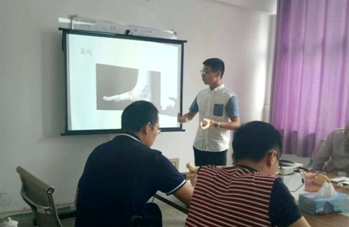 冯国强简单介绍了美国南加大物理治疗技术在临床医学院/附属医院开展的具体情况,他阐述了通过长期实践发现,该技术确实对治疗颈腰腿痛具有很好的疗效,和其它技术相比较最大的优点是治疗效果能维持更久并且能从源头解决问题。伍灵志治疗师从足踝的功能解剖、足底筋膜炎治疗、足踝扭伤处理等方面对培训内容展开讲解,就相关问题的评估与最佳物理治疗方案的选择进行了深入剖析。学员们在理论课后还进行了实操训练,大家针对实际应用相关问题积极提问,学习氛围浓厚。