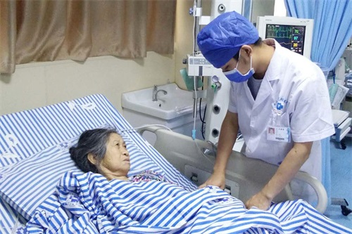 老人来自于九江市开发区永安乡,据所属村村长介绍,老人为当地贫困户,聋哑并存在智力障碍,无家可归,一直住在永安乡福利院。在了解到老人的特殊情况后,临床医学院/附属医院急诊科为老人开通了绿色通道,迅速做好检查并办理入院。收治入院以后,主治医师曹学锋见老人家庭贫困且无人照顾,便自行承担了老人的一日三餐的饮食,不仅为她买水带饭,有时为照顾老人口味更是在家亲手做饭送到病床前。对老人因智力障碍不能自理的情况,急诊科护士不厌其烦地悉心照顾她的日常生活,喂饭、擦浴……无微不至。经过悉心治疗,老人的病情较入院时明显好转。