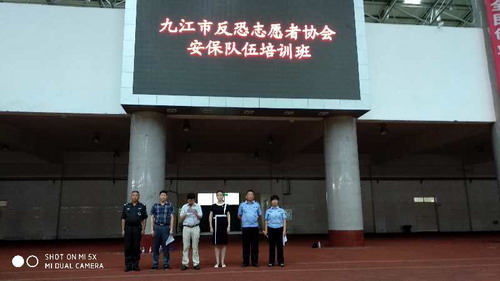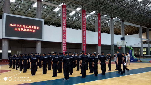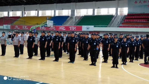 7月7日上午,九江市反恐志愿者协会安保队伍培训班开班仪式在永利yl23411集团官网田径馆举行,九江市反恐支队支队长杨军、反恐支队副支队长殷勤、特警支队副支队长黄问勇、九江学院保卫处处长张晓明、九江学院综治办主任王英资出席开班仪式。开班仪式由反恐支队副支队长李晓君主持。九江市反恐志愿者协会安保队伍及九江学院安保队伍、保卫处全体人员参加开班仪式。