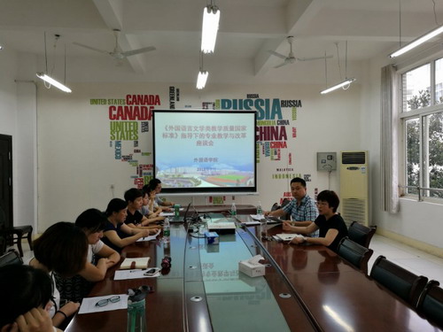 为进一步适应我国高等教育发展的新形势,落实审核评估对深化教学改革的相关要求,提高专业教学质量,满足新时期国家和社会对人才培养的需要,7月6日上午和下午,外国语学院分别召开了“《大学英语教学指南》指导下的公外教学与改革”座谈会和“《外国语言文学类教学质量国家标准》指导下的专业教学与改革”座谈会。外国语学院院长韩琨、副院长周志高、教务科科长王伟和各教研室主任及教师代表40余人参加了座谈会,座谈会由周志高副院长主持。
