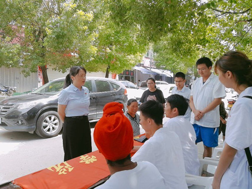 随后,我们在乡卫生院王医生的指导下,联合留学生开展了义诊服务。在小小的义诊台前,不时有乡亲们来测量血压、咨询健康知识,大家用自己的专业知识耐心的解答各种问题。虽然天气比较炎热,但大家的心情非常愉快,既能帮助到乡亲们,又能巩固所学的医学知识。