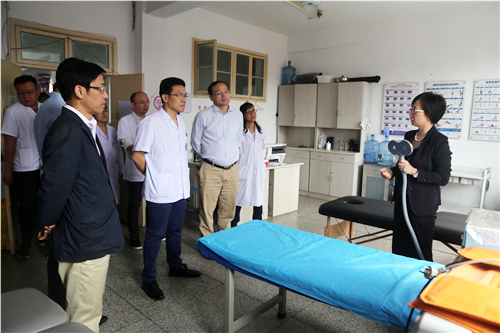 冯珍主任一行参观了临床医学院/附属医院康复治疗区运动大厅、理疗室、作业治疗室、言语训练区、传统康复治疗区等处,详细了解了康复科关于学科建设、人才培养、医疗器械的资源整合及科研工作的计划。她肯定了该院康复科在肌骨疼痛方面的工作成绩,并提出了指导性意见,指出要依托康复科现有的良好的医患关系,通过加强与外部联系,提高自身康复技能水平和科研能力,进一步快速有效地解决患者的切身问题;同时要进一步加强与院内神经内科、神经外科及骨科等科室的联系和学习交流,以医生为主体更好地为患者服务。