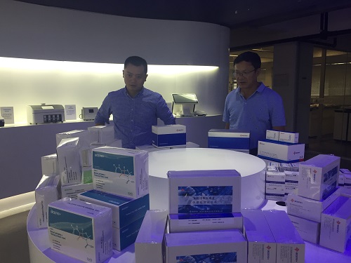 此次之行,鲍书记还考察了2005届生物信息学专业毕业生卢和华校友创办的深圳市易瑞生物技术股份有限公司。在卢和华校友的陪同下,鲍书记参观考察了企业的展示厅、行政中心、研发中心、实验室、生产车间、仓储和物流等部门,详细了解了公司的发展历程、企业文化、公司产品、销售规模以及人才需求等方面。