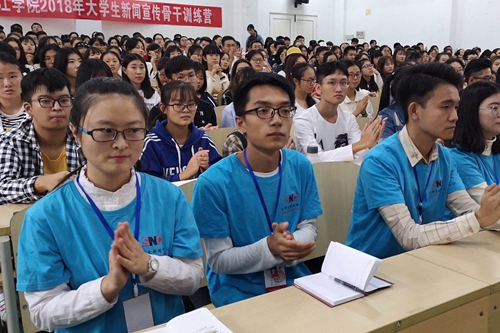 冯健指出,学校党委高度重视大学生新闻宣传骨干队伍建设,党委宣传部每年都要举办业务培训,这已成为永利yl23411集团官网党委宣传部常规性工作任务,取得了较为明显的成效。今年举办的这期训练营与往年相比较,有以下几方面的特点:一是这期培训班是永利yl23411集团官网党委宣传部三支学生新闻宣传队伍整合后的首次业务骨干培训,培训面更广、培训内容更全面深入;二是培训内容更加务实,从新闻实训、实战出发,注重新闻实务技能的掌握与提高,针对性强,进入实战角色快;三是培训内容更加广泛,课程包括:新闻从业人员基本素养、校园新闻写作、摄影理论与实践、新媒体运营、口语表达与发声技巧等;四是培训老师既有经验丰富的省市主流媒体知名新闻工作者,又有理论知识深厚的学者教授,师资队伍力量较强。