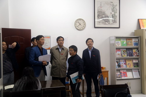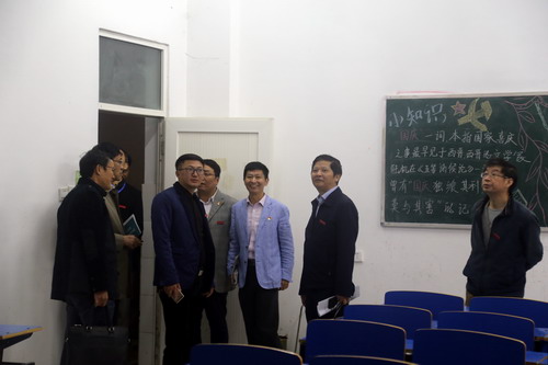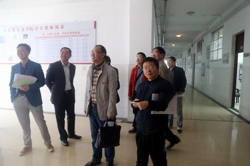 为迎接本科教学工作审核评估,努力建设充满活力、特色鲜明的大学校园和学院文化,根据学校统一安排,二级学院“一院一品”文化建设检查评比第一组评估组成员张南华(组长)、车向新、梁光霞、鲍海鸥、倪玉平、漆晗东、陈先平、支少华、何详勇、高培军、宛锦春等一行11人,于10月20日上午来到外语学院、文传学院、理学院、马克思主义学院、经管学院、会计学院、信息学院、艺术学院等处检查指导工作。