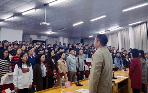 为深入学习贯彻党的十九大精神,加强入党积极分子对党的基本知识、基本理论的学习,从源头上确保发展党员质量,10月22日晚,永利yl23411集团官网第156期入党积极分子培训班开班仪式在图书馆主馆一楼报告厅顺利举行,来自外国语学院、电子工程学院、旅游与国土资源学院、化学与环境工程学院、信息科学与技术学院、经济与管理学院、电子商务学院218名入党积极分子参加了本次开班仪式。党校常务副校长李苏琴出席开班仪式并讲话,马克思主义学院余建明副教授为全体学员讲授开班第一课,党校办公室副主任陈娟老师主持开班仪式。