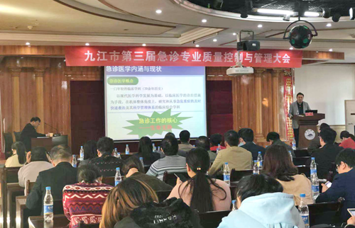 在急诊质控会议开幕式上,临床医学院/附属医院党委书记张南华发表讲话,他说,希望通过此次急诊质控大会,能够与省、市、县急诊专业同行互相交流、学习,为广大群众提供更为快速、高效、准确、安全的急诊医疗服务。市卫计委医政医管处朱衣文科长指出,质控中心是卫计委行政和医学专业的纽带和桥梁,急诊专业有特殊的使命,目前江西省省卫计委大力推进卒中、胸痛、创伤三大中心的建设,都与急诊科密切相关。九江是江西省四大医疗中心,希望参与此项工作的人员都要充分认识这一现实意义,切实履行急诊质控中心的责任,推进九江急诊专业发展和壮大,为九江人民群众健康保驾护航。