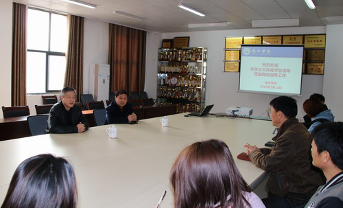 应我方邀请,华东交大体育学院院长王志斌教授和党委书记李梁华教授分别从训练、竞赛、学科建设、科研教学、学生工作和党建等方面简要地介绍了工作成绩、特色亮点、典型做法。并结合九江学院体育学院实际情况,提出宝贵意见和建议。一是凝聚特色,争创品牌,充分运用“九江是足球之乡”这个优势特色大做文章,争取政策和经费,提高足球竞技水平,为江西省足球运动输送人才。二是提升学科建设质量,多引进高水平博士主攻高质量科研,引进运动竞技水平高的青年硕士主攻运动队训练与竞赛。三是鼓励教师积极申报国家级基金,在扩大数量的基础上提高质量。四是推广“大健康”概念,鼓励全校师生积极参与体育运动,增强身体素质。