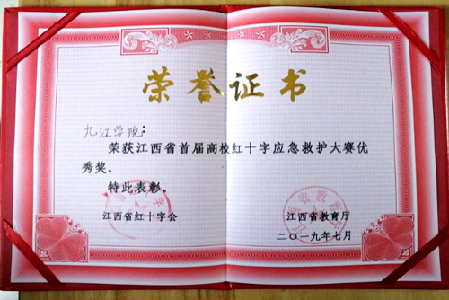 近日,由江西省教育厅、江西省红十字会共同主办的江西省首届高校红十字应急救护大赛在江西财经大学顺利举行。临床医学院欧阳海萍等五名学生作为九江学院代表队参加比赛,经过激烈角逐,获得团体红十字会应急救护大赛优秀奖,学生李淑芬获创伤救护个人三等奖的好成绩。