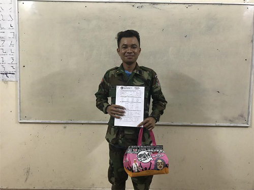两位学员代表也表达了自己学习中文的目的和想法。金思文(SOK KIM SREANG)少尉说他想在今年考过HSK4级,争取拿到孔子学院奖学金去中国读书;欧递尼(Ody Nick)上校说自己学习中文是为了更方便工作,希望有机会能够去中国的军队参观交流。