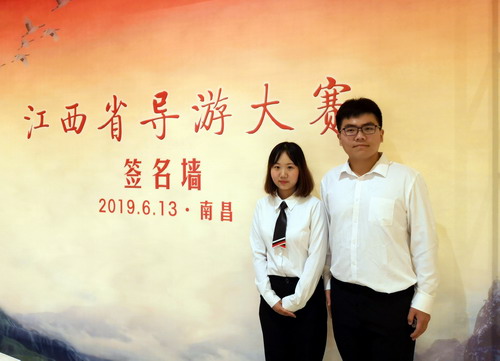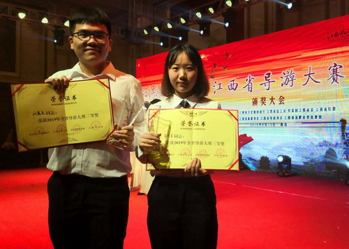 6月11日至13日,“2019年江西省导游大赛”在南昌市七星商务酒店隆重举行。永利yl23411集团官网旅游与地理学院选派17级旅游管理专业学生刘巍晨和李佳玺两位同学,代表九江市旅游协会参加了英文组赛项的角逐,两位同学最终获得全省第三名的好成绩。