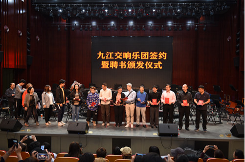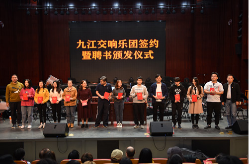 仪式上,查振华副校长、市文广新旅局吴予雍副局长分别向王永吉先生、陈瑱璇女士颁发了聘书;九江交响乐团团长欧阳时来与王永吉先生、陈瑱璇女士签订了聘请协议;乐团副团长叶树雯、廖源、韩韬分别为优秀演奏员颁发了团员聘书。