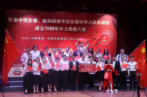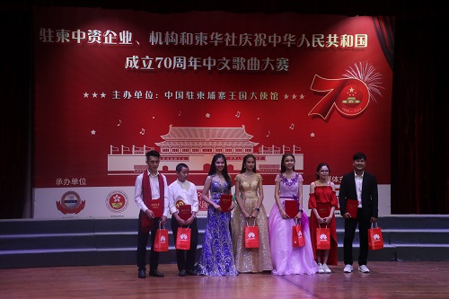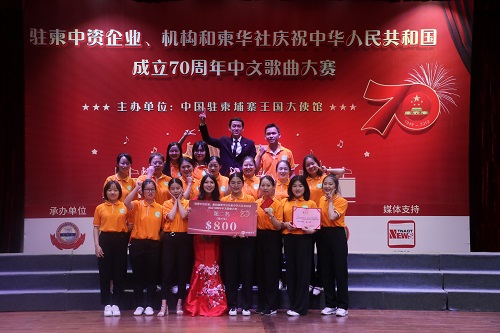 柬埔寨皇家科学院孔子学院参加中国驻柬埔寨大使馆主办庆祝新中国成立70周年歌曲大赛并获得好成绩