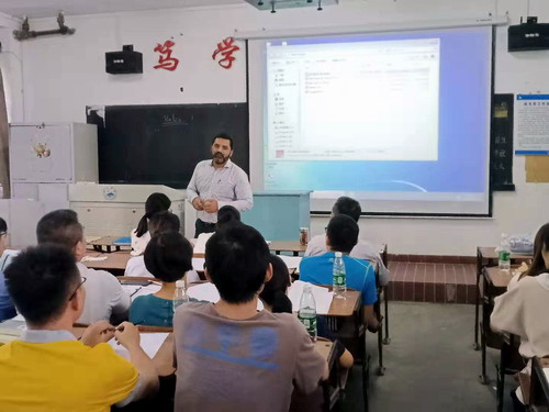 9月17日下午,开班仪式在庐峰校区举行,国际交流学院院长夏修龙介绍了永利yl23411集团官网的医学留学生教育情况,他希望学员们珍惜机会,克服困难,努力学习,不断提高英语水平。培训班由外教Kaleem博士担任培训教师,开班仪式之后,Kaleem博士为学员们开讲了第一堂课。
