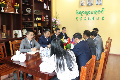 9月9日下午,柬埔寨皇家科学院孔子学院与中国科技部科学技术交流中心处长许佳军和江西省新能源工艺及设备工程技术研究中心主任周书民和东华理工大学人工智能学院副院长汪志成等一行五人在柬埔寨皇家科学院孔子学院签订协议,并举行柬埔寨太阳能发电技术应用示范基地揭牌仪式。柬埔寨皇家科学院秘书长Yang Poeu博士、副秘书长Chou Chandary博士、孔子学院中方院长柴克清先生、柬方院长苏碧娜女士(Vuth Sopheakna)等领导在孔子学院一楼会议室接待到访来宾,双方展开友好会谈,并出席上述仪式。