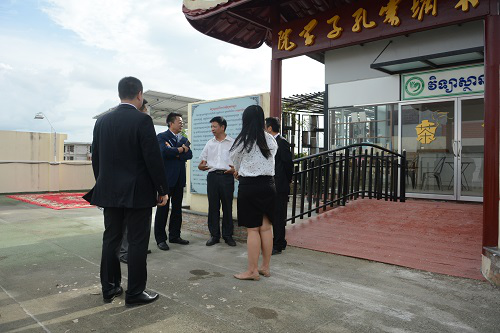 皇家科学院的各位领导和孔子学院的两位院长及部分教师对中国科技部和东华理工大学一行人的到访表示热烈欢迎,随后来访的嘉宾在两位院长的陪同下参观了柬埔寨皇家科学院孔子学院本部大楼,双方在亲切友好的氛围中来到三楼进一步参观太阳能发电技术应用示范基地的揭牌点。