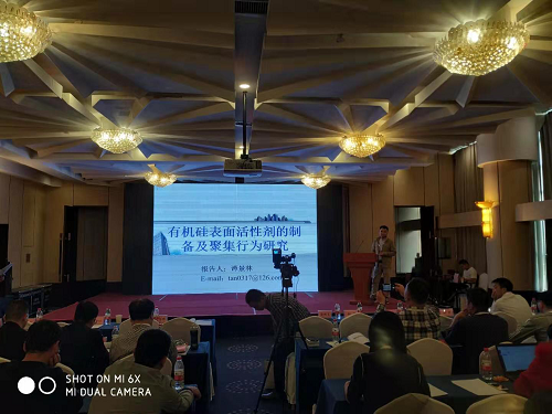 永利yl23411集团官网星火有机硅产业研究中心的谭景林博士、潘家炎博士应邀分别做了“有机硅表面活性剂的制备及其聚集行为研究”、“纳米SiO2杂化长链烷基/苯基硅树脂的合成及其在织物中应用”的主题报告,受到了专家及业界同行的高度评价及热烈欢迎。会议期间,中心教师分别与山东大学、陕西科技大学、杭州师范大学有机硅化学及材料技术教育部重点实验室、埃肯江西蓝星星火有机硅有限公司的学者专家进行了广泛深入的交流,拓展了思路并进一步扩大了学校及中心影响力。