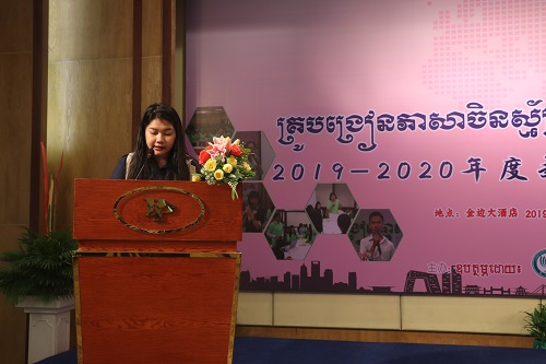 柬埔寨皇家科学院秘书长杨博博士表示汉语教育事业的进步顺应了中柬发展的需要,一方面有助于中柬文化交流和两国命运共同体建设,另一方面也为中柬经济、政治的发展起到了重要的作用。杨博博士希望老师们可以借岗中培训的机会努力提升教学技能和专业素质,为柬埔寨社会培养更多、更优秀的汉语人才。他说道,各位汉语教师就好像画家,为柬埔寨社会生活带来了丰富多彩的颜色,是牢固中柬友谊的纽带。他希望各位汉语教师在柬埔寨积极融入当地生活,感受异国风情,展现青春风采。最后,杨博博士宣布2019-2020年赴柬柬埔寨汉语教师志愿者岗中培训正式开始。