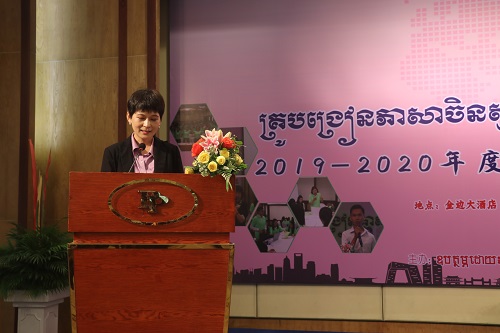 孔子学院总部/国家汉办项目官员来永梅老师首先欢迎各位领导、嘉宾及全体在柬汉语教师的到来,并对柬埔寨孔子学院和柬华理事会一直以来的支持和帮助表示衷心的感谢。其次,来永梅老师高度肯定了各位汉语教师的辛苦劳动。不可否认,我们的汉语教师们在柬生活和工作中遇到过或多或少的困难,但老师们自信坚强、迎难而上,获得了柬埔寨社会各界的肯定,她对此感到非常欣慰。希望各位老师继续发扬“奉献,友爱,互助,进步”的志愿者精神,让“汉语之花”在柬埔寨继续美丽绽放。