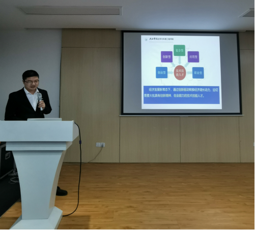 11月6日,永修县人社局会同县委组织部、县税务局、县工信局共同举办了永修县干部服务企业能力提升暨企业创新能力提升培训讲座。化环学院青年教师兼永修县工信局技术总监沈显波博士应邀对永修县工业园区和各乡镇分管工业的领导干部、辖区内高新技术企业、独角兽瞪羚企业、科技型中小型企业做产教融合专题培训。