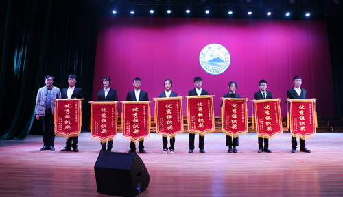 晚会中间,校团委、宿管中心负责人为获奖单位、寝室及个人进行了颁奖,其中,外国语学院学生分会、机械与材料工程学院学生分会、护理学院学生分会、经济与管理学院学生分会、信息科学与技术学院学生分会、会计学院学生分会、电子商务学院学生分会、文学与传媒学院学生分会荣获优秀组织奖。学生宿舍27栋、8栋等10个楼栋在主题板报活动中获奖;外国语学院7栋418、机材学院25栋317等60间寝室荣获寝室文化节“优秀寝室”称号;经管学院刘丽、会计学院马靖修等49名同学在寝室文化节活动中荣获先进个人。