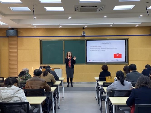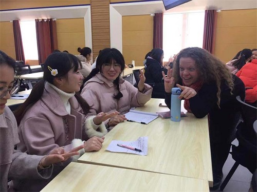 语言教师Heidi Healy为外院教师带来了一堂有关“自主学习”的内容丰富而又颇为实用的英语教学指导课,她从动机、学习方法、时间、物理环境、社会环境和绩效6个法则向教师们展示了自主学习的策略和方法;随后她又为外院学生带来了一场有关“英语语法游戏”教学的生动有趣的讲座,她通过展示丰富的语法教学的游戏和案例,启发学生如何灵活地掌握和运用语法规则。讲座后,我院师生与外教就讲座内容进行了问答和互动。我院对ELF项目给予较高认可,双方希望能以多种方式展开进一步的合作交流。
