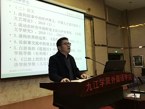 按照学院“学术活动月”的部署,11月27日下午,外国语学院在香远楼三楼报告厅举行“学术活动月”教科研团队学术汇报会。活动由外国语学院副院长周志高主持,全体教师参加了本次学术汇报会。